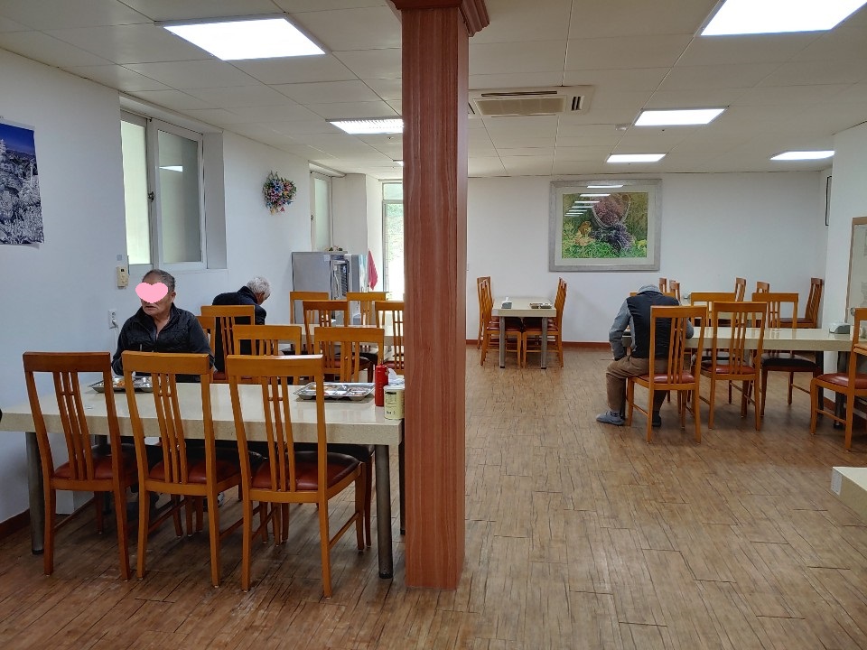 -식사시 : 어르신간 시간차 간격을 두고 식사하도록 조치 1테이블에 1m이상 간격을 유지하여 2분씩 식사하시도록 실시
