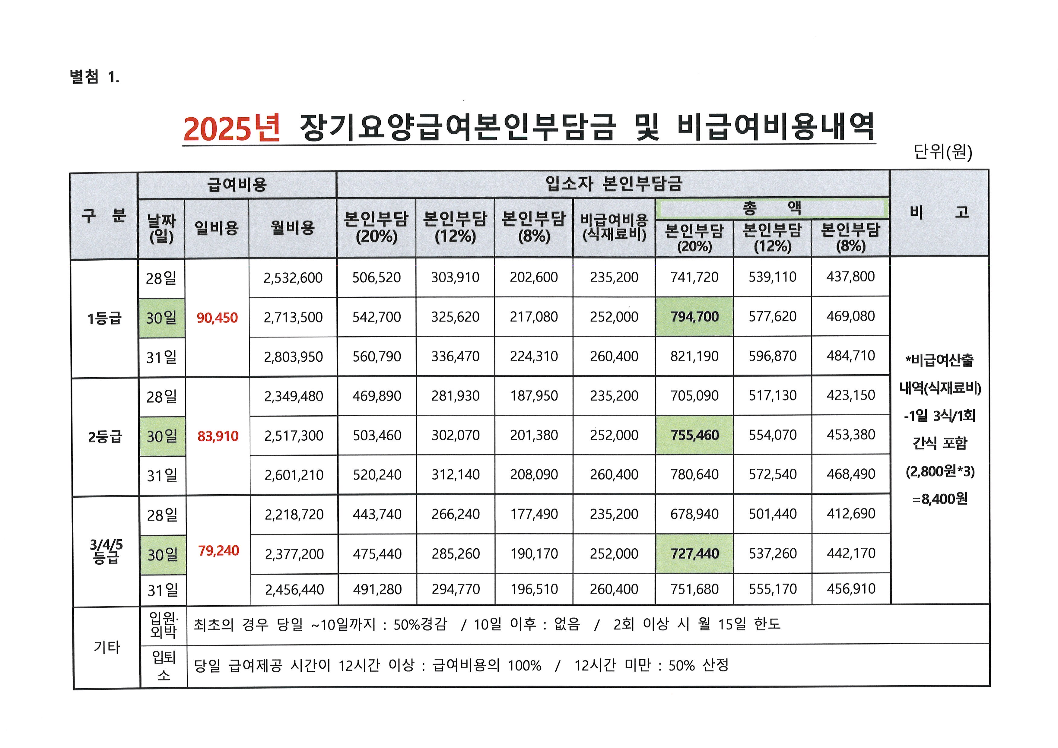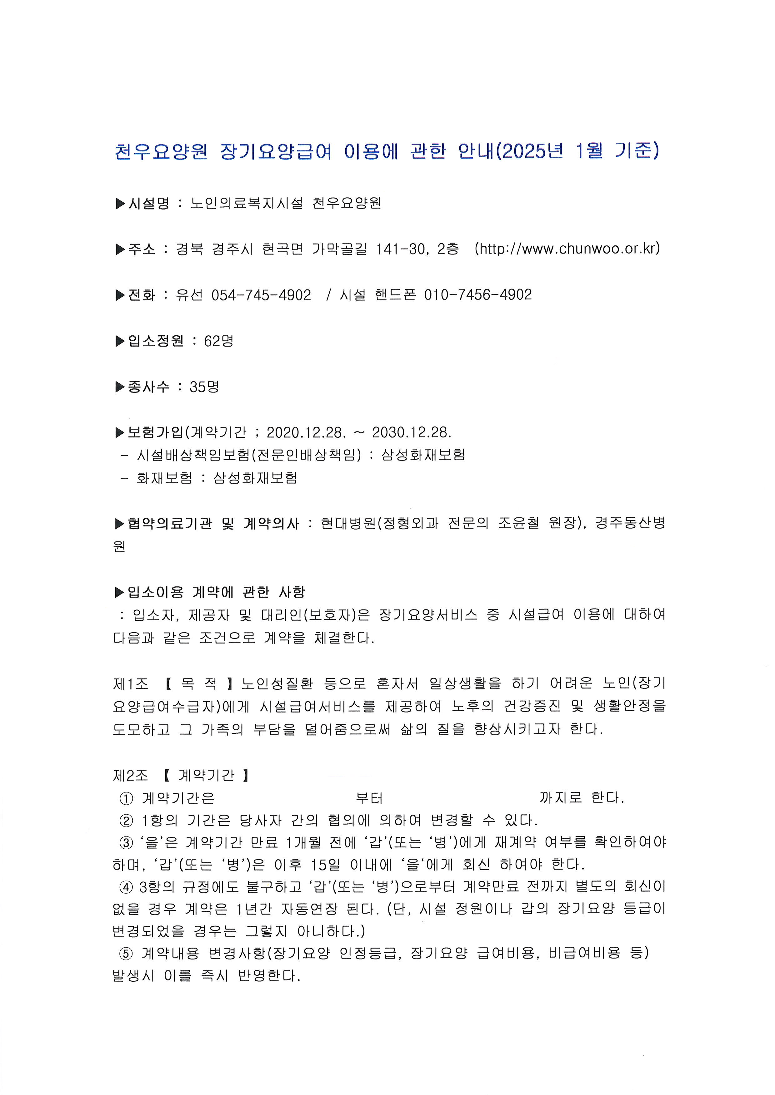 2025년 천우요양원 장기요양 이용에 관한 사항